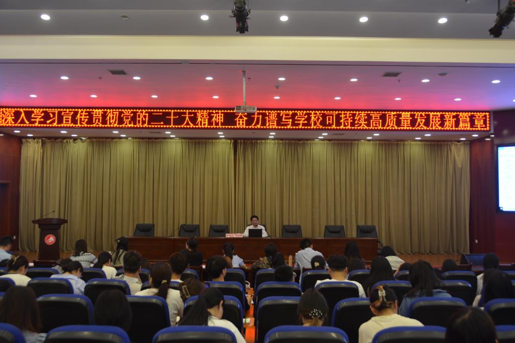 6月8日上午,校党委书记、校长邵必林在图书馆3楼报告厅向幼儿教育学院师生讲授了《深入学习宣传贯彻党的二十大精神 奋力谱写学校可持续高质量发展新篇章》专题党课。幼儿教育学院第三期入党发展对象、第二期入党积极分子、全体辅导员和部分党员师生聆听了党课。党课由幼儿教育学院党委副书记王继康主持。邵必林书记以“入党动机的重要性;进一步明确自己为什么要入党、为谁而入党这一根本问题;入党是一种政治信仰,而不是政治...