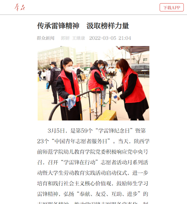 幼儿教育学院“传承雷锋精神 汲取榜样力量”被陕西日报群众新闻版进行宣传报道。