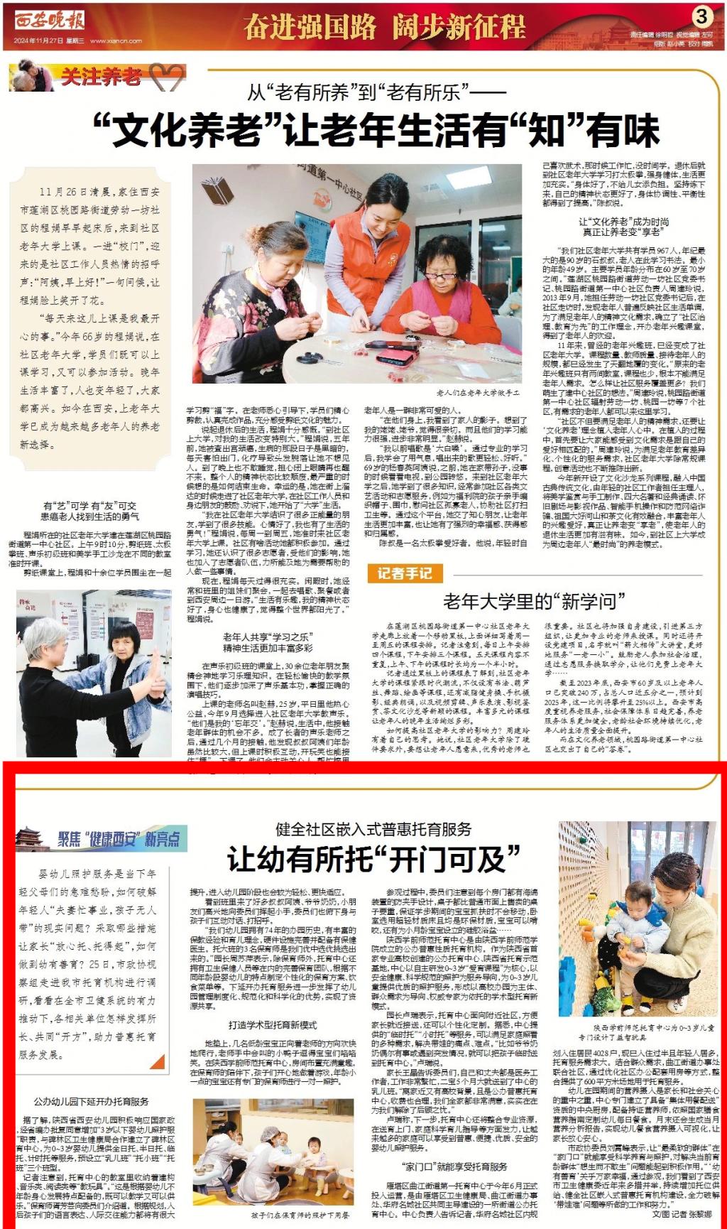 《西安晚报》以《让幼有所托“开门可及”》为题,对bat365托育中心进行了深入报道。记者用生动的笔触描绘了托育中心的环境设施、教育理念以及和孩子们在这里的快乐生活。同时,详细介绍了bat365托育中心以专业高校为主题打造学术型托育新模式的做法和经验。