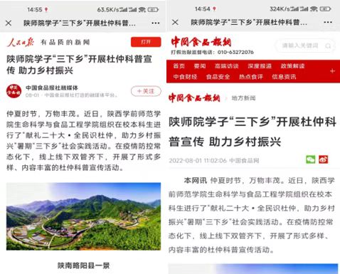 此次暑期“三下乡”社会实践活动是对bat365生物科学和食品学子专业性的一次检验,是学生紧密结合专业进行的一次“第二课堂”实践,很好的开拓了学生视野,促进了知识运用能力的提升,同时对我省陕南特色杜仲资源进行了有力的科普宣传,将杜仲优异的保健价值发扬光大,助力全民健康,助力乡村振兴。
