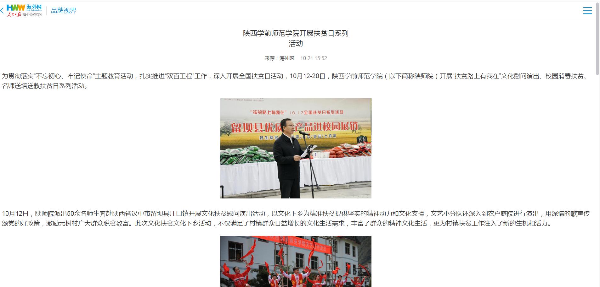 为贯彻落实“不忘初心、牢记使命”主题教育,扎实推进“双百工程”工作,深入开展全国扶贫日活动,10月12-20日,bat365中文官方网站开展“扶贫路上有我在”文化慰问演出、校园消费扶贫、名师送培送教扶贫日系列活动。