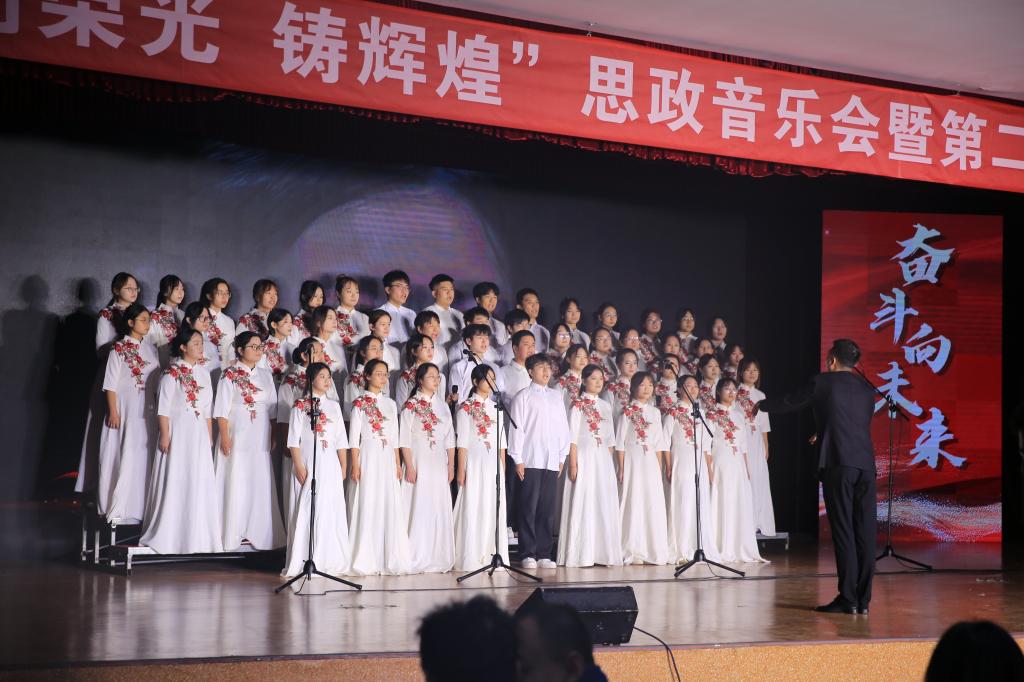 10月30日,学校“创荣光 铸辉煌”思政音乐会暨第二届新生合唱比赛决赛在大学生活动中心唱响。来自各学院的代表队满怀激情,用歌声谱写奋斗之志,奏响了爱党爱国爱校最强音。决赛评委由音乐学院副教授刘凯、党委学工部副部长王成富、校工会副主席解跃、校团委书记李蓉、生命科学与食品工程学院党委副书记郑美霞、历史文化与旅游学院党委副书记景艳、数学与统计学院党委副书记张晔和马克思主义学院党委副书记白艳担当。