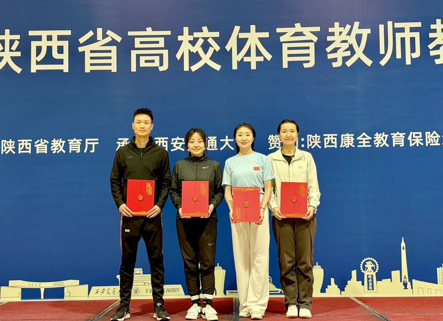 10月26-27日,2024年陕西省高校体育教师教学技能大赛在西安交通大学兴庆校区举行,bat365教师仲博文荣获本科青年组足球一等奖,陈虹洁、吴梦娇、侯怡瑄分别荣获本科青年组健美操、足球、乒乓球二等奖。