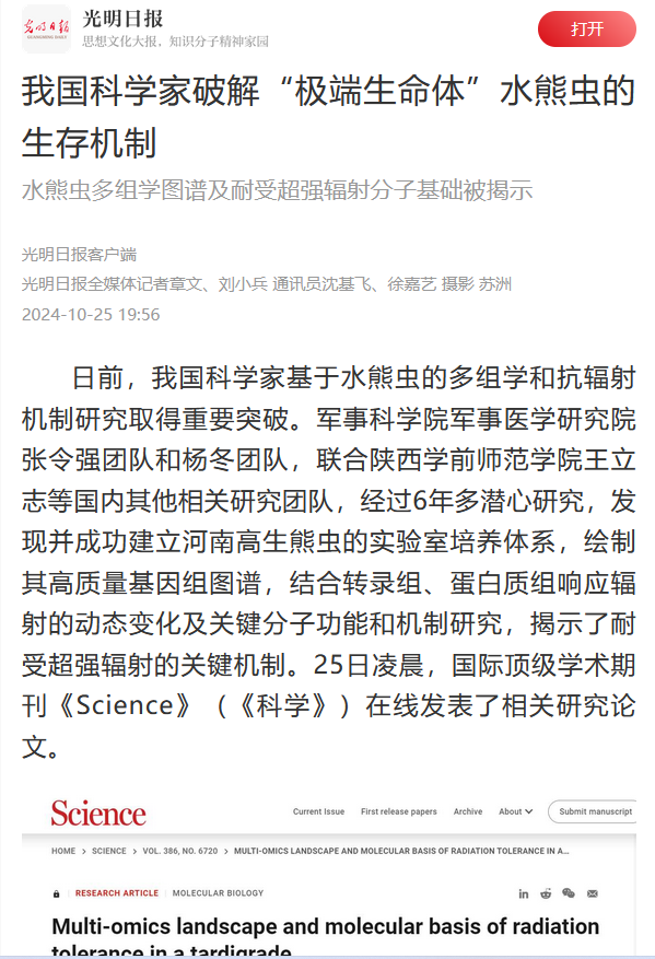 5.光明日报:我国科学家破解“极端生命体”水熊虫的生存机制
