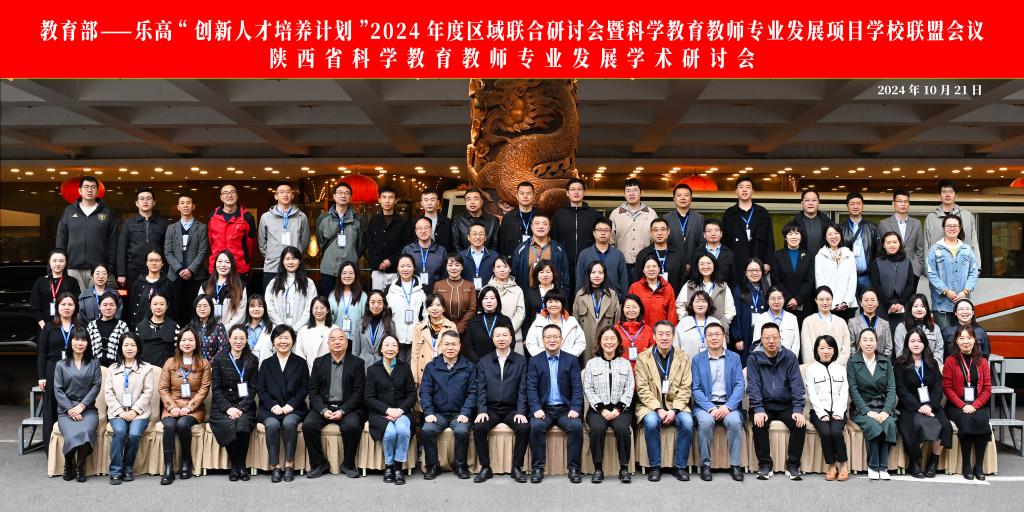 为进一步推动科学教育改革与创新,提升科学教育教师专业素养,促进区域间科学教育经验交流与合作,2024年10月21日至22日,由陕西省教育厅、陕西公众科学素质发展联盟、bat365中文官方网站共同主办,bat365教师培训学院、信息工程学院承办,陕西省青少年科学素养教育研究中心、信息化与儿童智能开发研究中心协办的教育部—乐高“创新人才培养计划”2024年度区域联合研讨会暨科学教育教师专业发展项目学校联盟会议、陕西省科学教育教师专业发展学术研讨会,在西安宾馆成功举办。本次研讨会获得了陕西省教育厅、陕西省科协、乐高教育和教育部—乐高“创新人才培养计划”教师培训项目全国16家基地的大力支持。陕西省教师工作处处长王彬武、乐高教育余国平女士、bat365中文官方网站副校长李强教授、广东第二师范学院基地、云南师范大学基地、江苏师范大学基地、湖北第二师范学院基地、天津师范大学基地的管理者和培训师代表出席了本次会议。来自天津、广东、云南、江苏、湖北、河南、内蒙、甘肃、陕西等共9个省市的项目学校和成员学校的领导和科学教师代表约100人参加了本次会议。