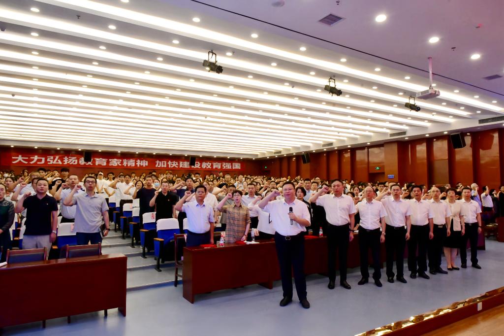 校长张健在主持会议时指出,教育是国之大计、党之大计,教师是立教之本、兴教之源。广大教师要以习近平新时代中国特色社会主义思想为指导,忠诚党的教育事业,大力弘扬教育家精神,立足本职岗位,心怀国之大者,做自立自强、教育报国的践行者。与其抱怨身处黑暗,不如提灯前行,我们既要做点灯者,更要做传灯人。师泽如光,微以致远;师泽若水,润物无声。我们要择一事、终一生,为培养德智体美劳全面发展的社会主义事业建设者和接班人贡献力量。他强调,学校也将不断加强师资队伍建设,厚植重师爱教文化,团结带领广大师生员工,迎难而上、接续奋斗,为把学校建设成为高水平的师范院校而努力奋斗。