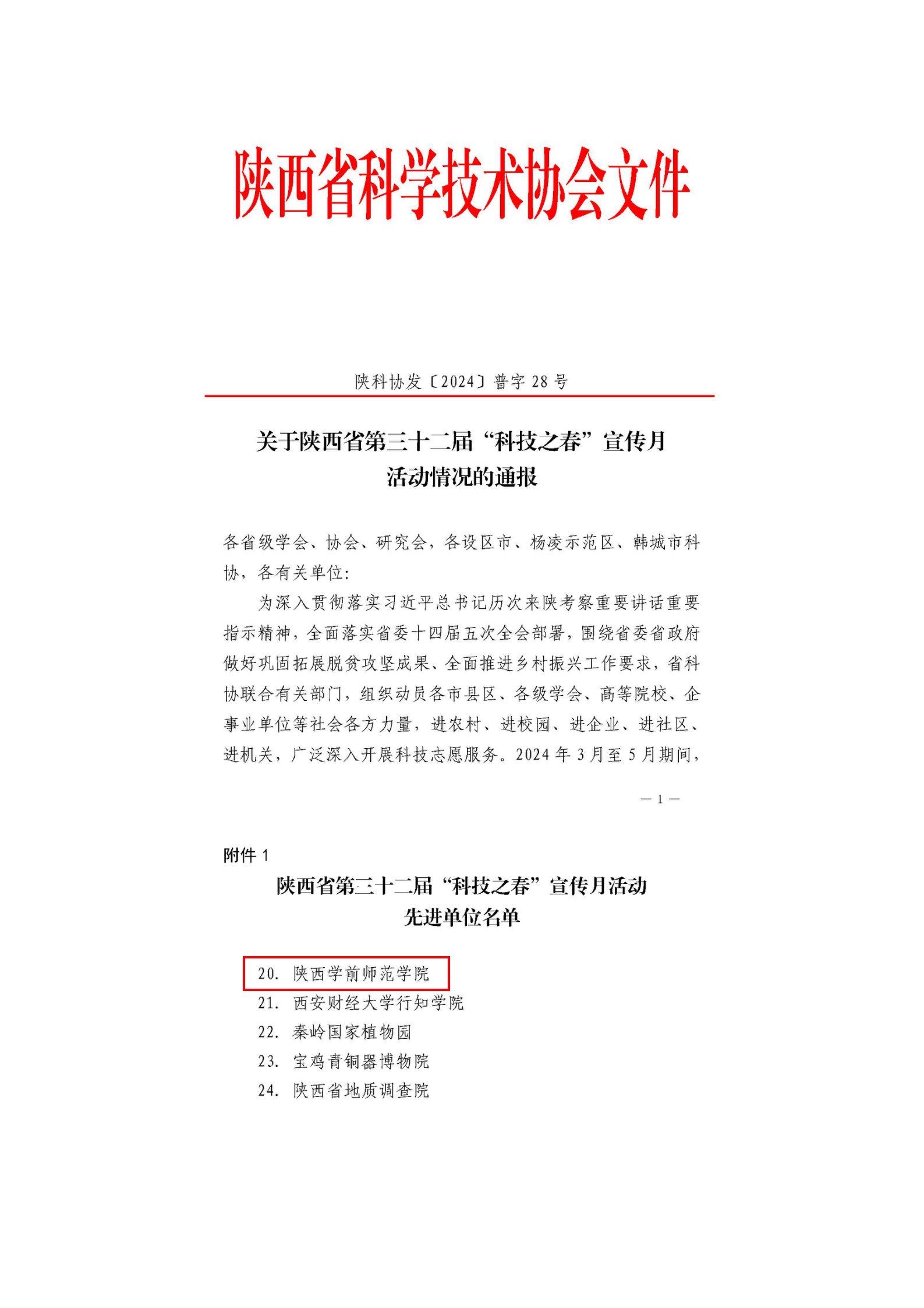 近日,陕西省科学技术协会发布了《关于陕西省第三十二届“科技之春”宣传月活动情况的通报》(陕科协发〔2024〕普字28号),bat365被评为陕西省第三十二届“科技之春”宣传月活动先进单位。这是自2021年bat365中文官方网站科学技术协会成立以来第二次获此荣誉。