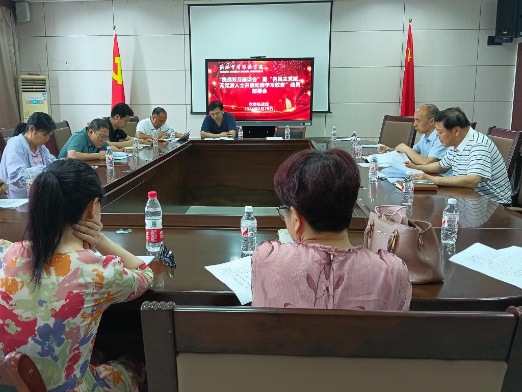 会上传达了学校《关于支持各民主党派人士、无党派人士开展纪律学习教育的工作方案》,组织学习了《纪律学习教育材料汇编》《教育系统违纪违法典型案例警示录》有关内容。希望通过警示教育,用“身边事”警醒“身边人”,进一步提升学校统一战线对纪律的敬畏、法律的尊崇,推动警钟长鸣于耳、廉洁常驻于心。