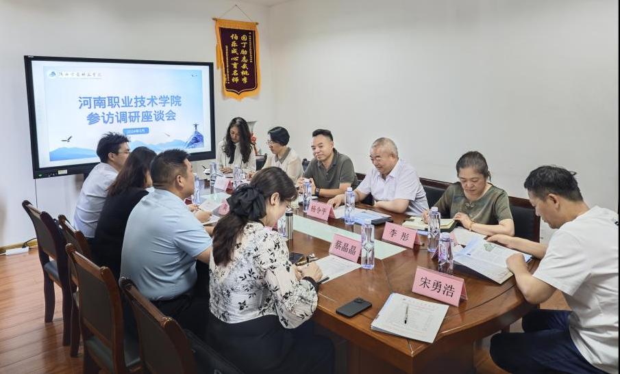 2024年5月23日,河南职业技术学院继续教育学院院长梁保然、副院长黄菲等一行5人来访bat365学习调研。bat365培训学院(继续教育学院)院长杨令平、副院长贺燕丽、雁塔校区党总支书记李彤和科教产业公司总经理马云等相关人员参加座谈会。座谈会由科教产业公司马云主持。