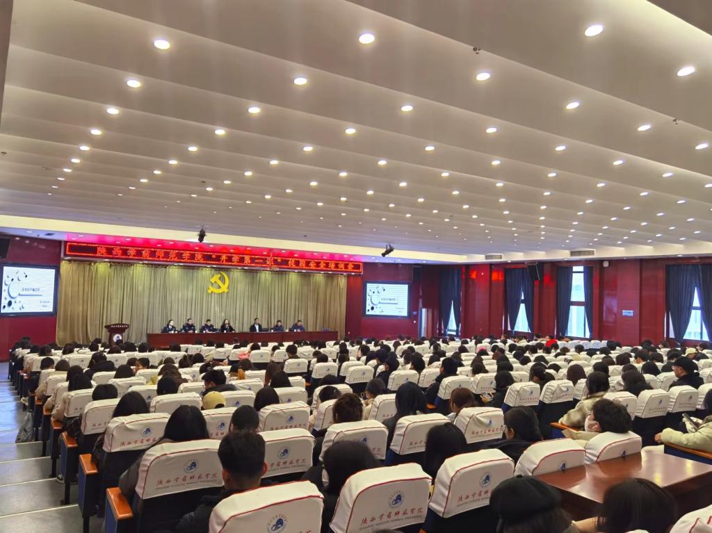 春风有信,花开有期,新学期如约而至。为深入推进新学期学校安全教育工作和“平安校园”建设,增强同学们的安全意识,确保开学各项工作安全平稳有序。2月28日,保卫处、学生处在图书馆三楼东侧学术报告厅组织开展“开学第一课”校园安全暨消防专题培训会。各学院教师代表、学生代表以及保卫处、学工部全体工作人员共400余人参加了培训。常宁路派出所冯教导出席活动并讲话,活动由学工部部长薛晓娟主持。本次培训会特邀常宁路派出所雷婧文警官和陕西省校园安全专家、西安市第75中学张永安书记授课。