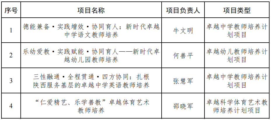 近日,陕西省教育厅公布了首批卓越教师培养计划改革项目拟立项名单,我校推荐的“德能兼备·实践增效·协同育人:新时代卓越中学语文教师培养”等4个项目成功入选。