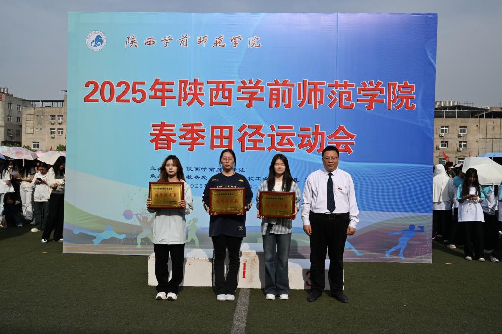 闭幕式上,组委会宣布了本届运动会团体总分排名及体育道德风尚奖获奖单位。幼儿教育学院获得学生甲组团体总分第一名,教育科学学院、信息工程学院、数学与统计学院、音乐学院、人文学院分获二到六名;学生组前三名分别是22级体育教育女队、24级体育教育女队和24级体育教育1班;幼儿教育学院、马克思主义学院、外国语学院;音乐学院、美术学院、生命食品与化学学院、经济与管理学院获得开幕式风采展示奖;教工组团体总分第一名是信息工程学院分会,获得二到八名的分别是机关三党委分会、外国语学院分会、生物食品与化学学院分会、马克思主义学院分会、人文学院分会、音乐学院分会和幼儿教育学院分会;教工组的生物食品与化学学院分会、马克思主义学院分会获得体育道德风尚奖;信息工程学院分会、机关三党委分会、外国语学院分会获得了优秀组织奖。校领导为获奖集体颁发奖牌,全场掌声雷动,向拼搏者致敬。
