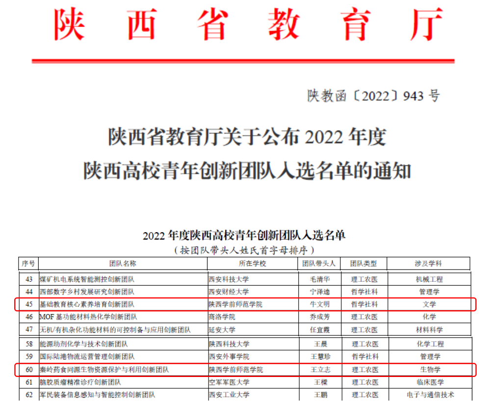 完成了3个批次167名高层次人才任期届满考核,遴选培育校级科研创新团队7个,获批省级青年创新团队3个,1名教师入选陕西省中青年科技创新领军人才,1名教师入选陕西省青年科技新星。