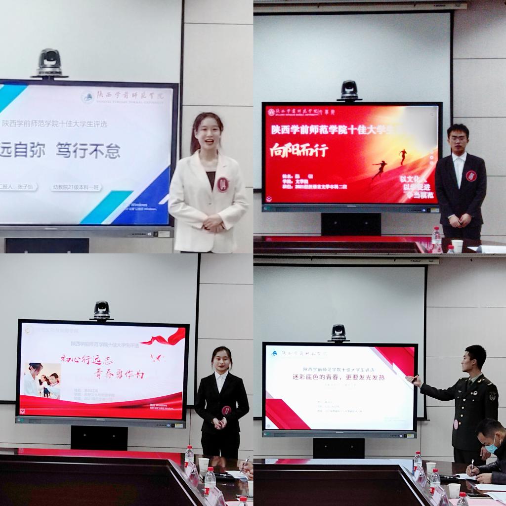 在评审环节,评委根据候选人个人陈述和申报材料对他们进行提问,进一步了解学生各方面的表现情况,并进行现场打分。最终,综合评委打分、量化得分及现场答辩情况,来自幼儿教育学院的张子怡等10名同学进入2022-2023学年“十佳大学生奖”最终公示环节,来自马克思主义学院的喻可等5名同学进入2022-2023学年“十佳大学生提名奖”最终公示环节。
