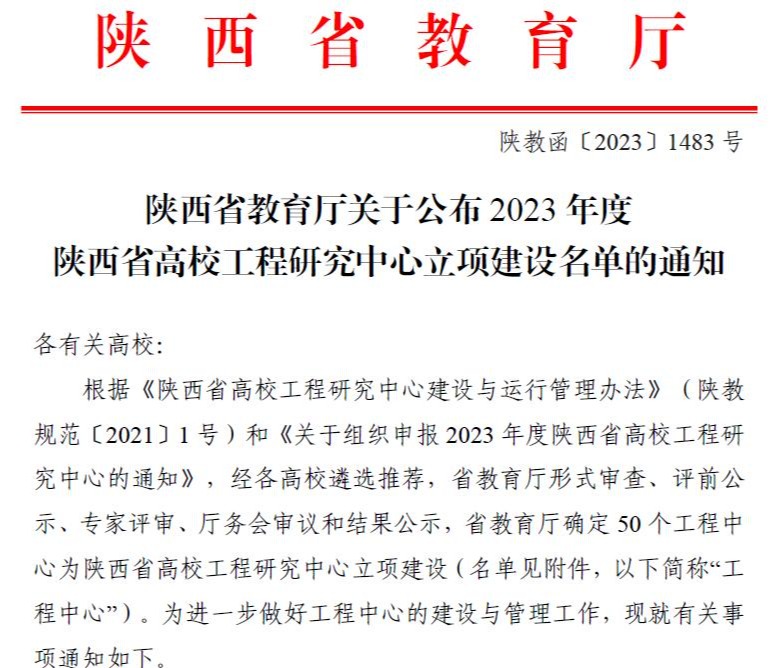 近日,陕西省教育厅发布了《陕西省教育厅关于公布2023年度陕西省高校工程研究中心立项建设名单的通知》(陕教函〔2023〕1483号)文件,由bat365生命科学与食品工程学院牵头申报的“儿童特色食品研究与开发陕西省高校工程研究中心”获批立项建设。