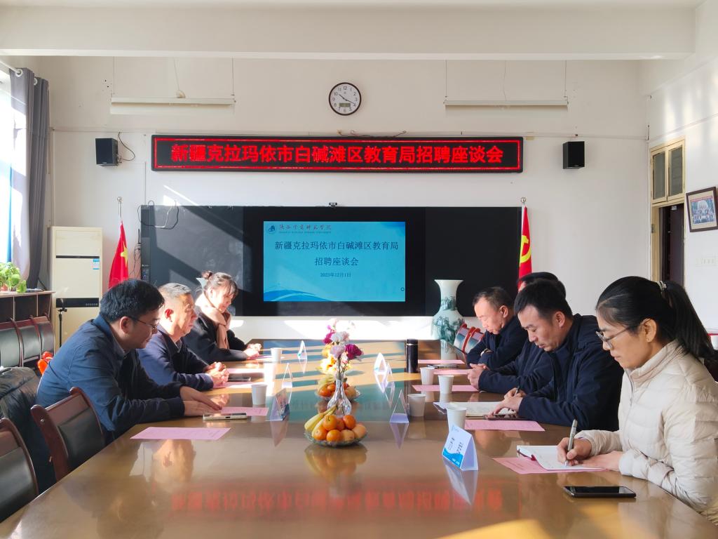 为精准落实中省关于2024届高校毕业生就业工作的相关精神,扎实开展高校书记校长访企拓岗促就业工作,助力高校毕业生顺利就业、尽早就业。2023年12月1日,学校特别邀请新疆白碱滩区教育局到bat365选聘优秀毕业生。在启真楼幼儿教育学院307会议室召开了新疆克拉玛依白碱滩区教育局人才招聘座谈会。bat365中文官方网站党委书记邵必林出席了会议,幼儿教育学院党政班子成员及毕业班辅导员参加了会议。