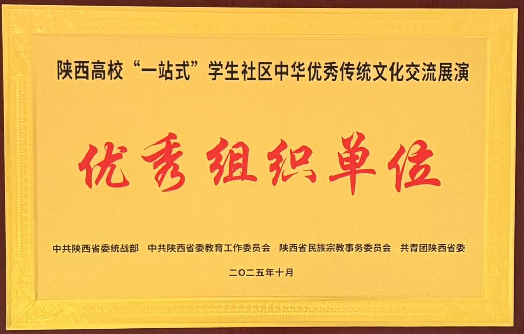10月26日,陕西高校“一站式”学生社区中华优秀传统文化交流展演活动在西安交通大学举办。活动以“赓续中华文脉 铸魂时代新人”为主题,吸引全省29所高校师生齐聚一堂。学校凭借特色鲜明的文化呈现和扎实高效的组织保障获评“优秀组织单位”奖项。