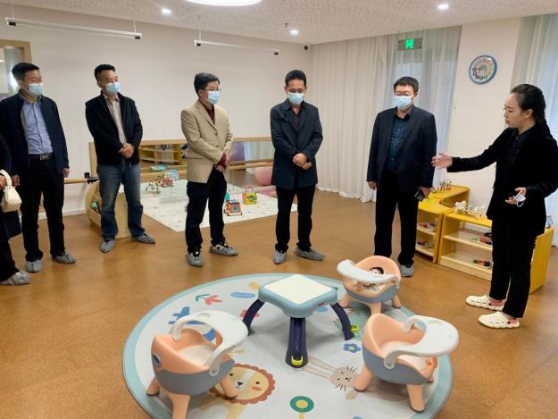 10月18日上午,榆林市榆阳区卫生健康局党委委员卢永丞,榆阳区老龄健康与家庭发展服务中心主任思耀恒一行来陕西学前师范托育综合服务中心开展调研活动。雁塔区卫健局侯自忠副书记,科教产业集团总经理马云等陪同参观并座谈。