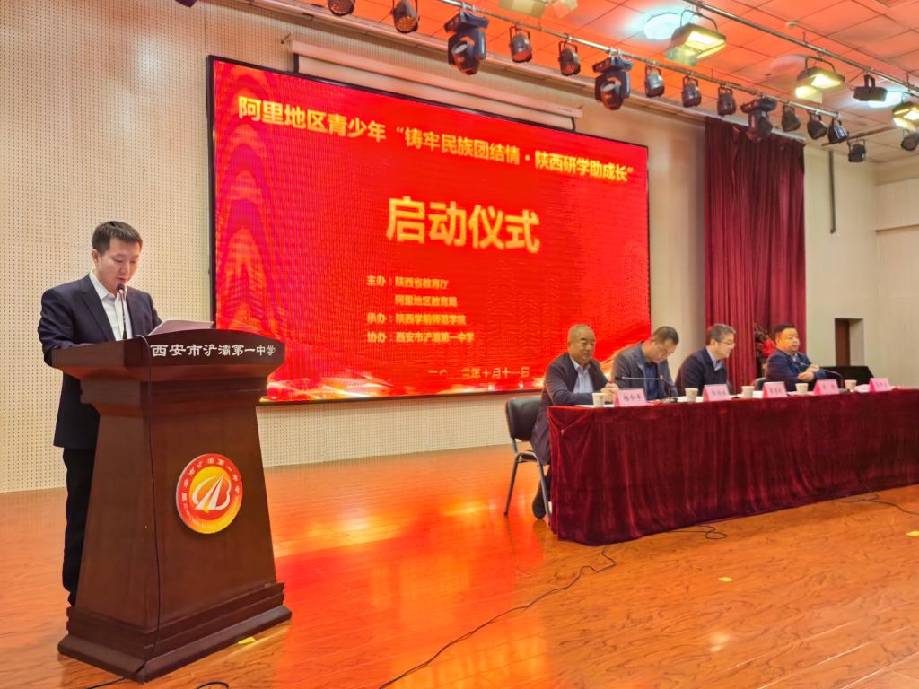 10月11日上午,由省教育厅和阿里地区教育局联合主办,bat365承办的“铸牢民族团结情 陕西研学助成长”阿里地区青少年研学活动在西安市浐灞第一中学开营。副校长李强、省教育厅教师工作处处长王彬武、阿里地区教育局副局长韩润社、西安市浐灞第一中学校长高根宏、教育培训学院负责人等出席开营仪式,来自阿里地区的34名学生、6名带队教师及浐灞一中领导和老师参加了活动。仪式由bat365教育培训学院负责人主持。