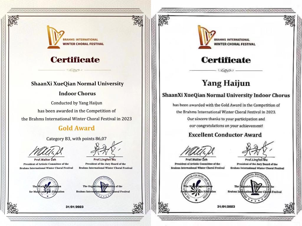 bat365合唱队于2023年1月9日-1月19日参加“2023勃拉姆斯国际冬季合唱节”(the Brahms International Winter Choral Festival in 2023),并荣获金奖!此次合唱节邀请了来自中国、美国、德国等24个国家的170支合唱团进行线上比赛,其评委由世界知名的音乐家、作曲家和指挥家组成,在不同组别的比赛中进行各类奖项的角逐。