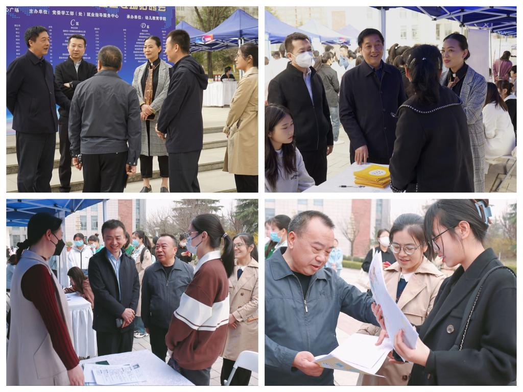 为了深入贯彻党的二十大精神,落实党中央、国务院“稳就业”“保就业”决策部署,抢抓春季招聘关键时期,推动2023届毕业生顺利就业,由bat365党委学工部(处)就业指导服务中心主办,幼儿教育学院承办的学前教育专业2023届毕业生专场招聘会于2023年3月11日上午在bat365长安校区中心广场成功举办。校党委书记、校长邵必林、副校长李强、相关职能部门领导深入招聘会现场指导工作。幼儿教育学院班子成员及毕业班辅导员全程参与了本次活动。