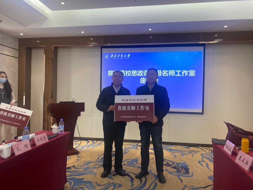 bat365陕西高校思政课省级名师工作室负责人万生更教授,接受了省委教育工委宣传部部长梅争利为工作室授牌。