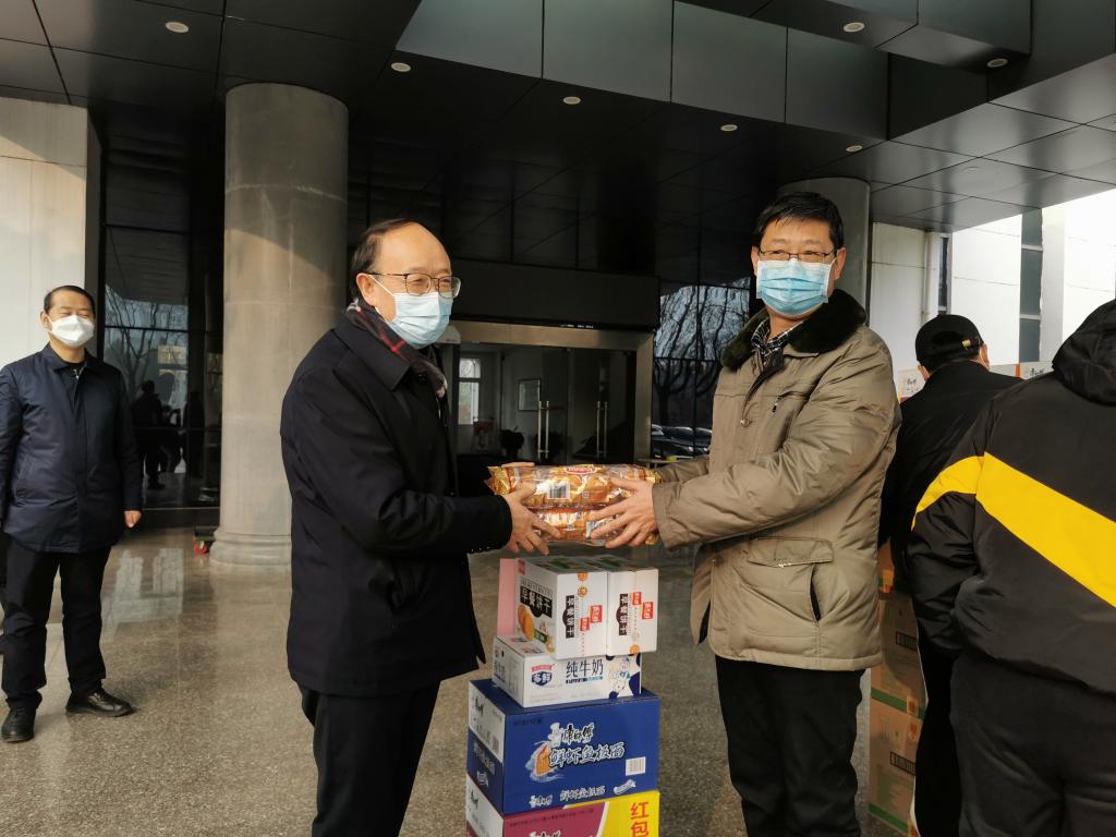 近日,校党委书记、校长邵必林、党委副书记权秋虎、副校长唐宏看望慰问寒假期间坚守一线加班值守的党委组织部、人事处、教务处、财务处、国资处以及安全保卫、后勤保障、工程建设等单位在岗职工,为大家送去新春祝福和节日慰问。