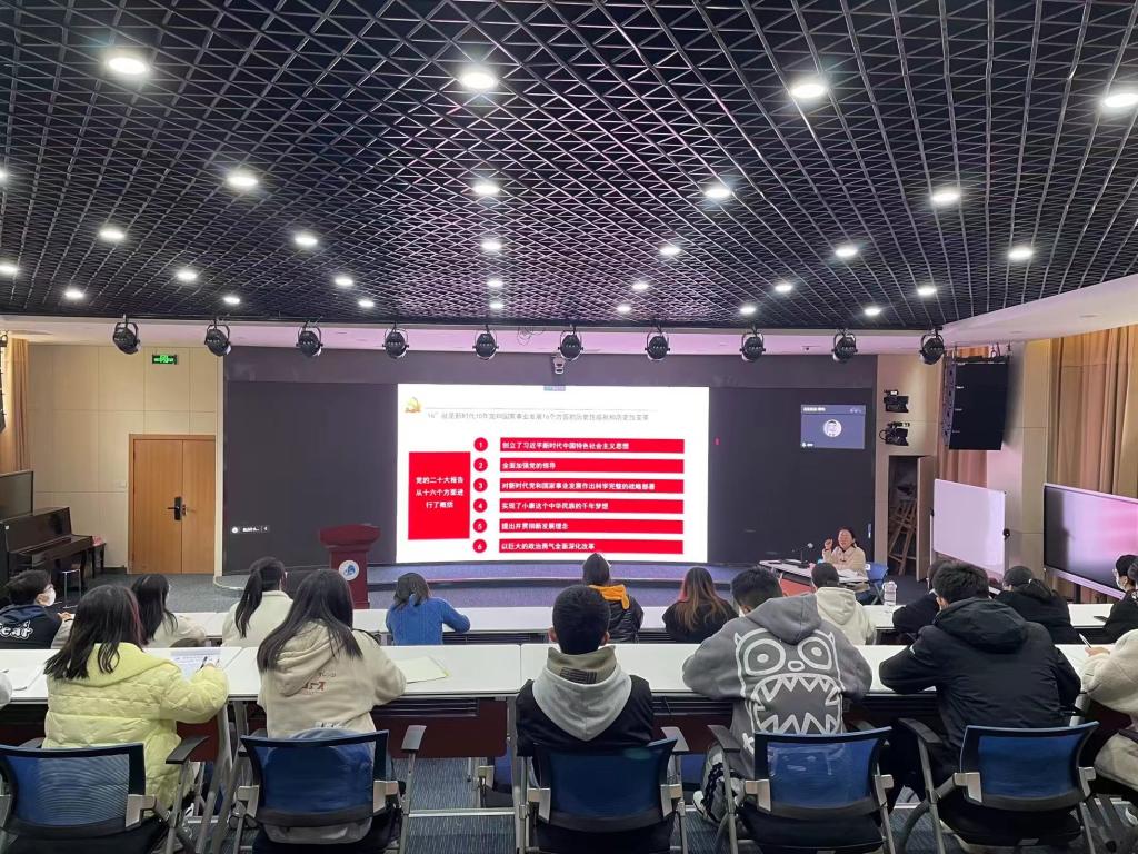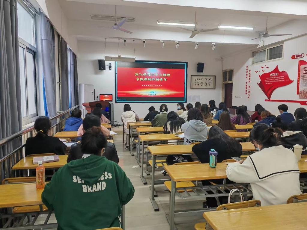 党的二十大是一次高举旗帜、凝聚力量、团结奋进的大会。为深入学习宣传党的二十大精神,教育引导团员青年掌握大会提出的一系列重大论断、重点部署、重要要求,找准党和国家大局同自己学习工作生活的关联点,自觉做习近平新时代中国特色社会主义思想的坚定信仰者和忠实践行者,夯实用党的科学理论武装团员青年的理论功底,让二十大的精神入耳入脑入心,校团委在广大团员青年、青马骨干、团学骨干中间推出“学习二十大 永远跟党走 奋进新征程”系列专题讲座,掀起学习热潮。