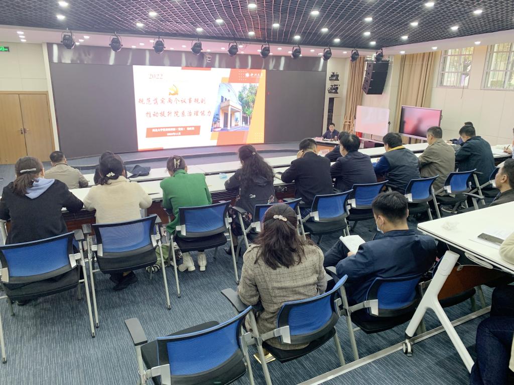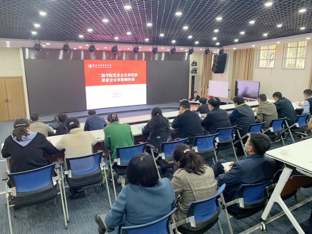 为推动二级党组织会议和党政联席会议制度科学规范落实,提升二级单位党政决策的科学化、民主化、规范化水平,11月8日,学校举办了“二级党组织工作规程培训会”。各二级党组织书记、二级学院院长、会议记录人员等四十余人参加了会议。校党委书记、校长邵必林出席会议,会议由校党委副书记栾高明主持。