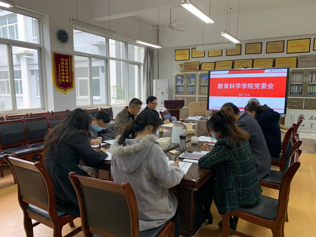 2022年10月26日,教育科学学院在博文楼A202会议室召开学院党委会和党政联席会,学院全体党委委员、各支部书记和各系主任参加会议,校党委书记、校长邵必林出席并指导会议。党委会、党政联席会分别由党委书记庞蔚江、院长朱金卫主持。