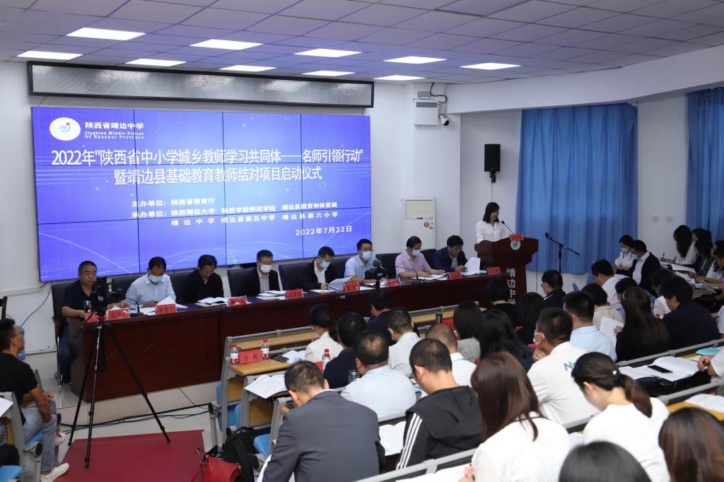 7月22日,由陕西省教育厅主办、bat365中文官方网站和陕西师范大学承办的“陕西省中小学城乡教师学习共同体—名师引领行动”暨靖边县基础教育教师结对项目启动仪式在榆林市靖边中学举行。陕西省教育厅教师工作处处长王彬武、bat365副校长李强、榆林市教育局副局长韩玉红、靖边县党委副书记李万昌出席,bat365教育培训学院负责人、陕西师范大学教师干部培训学院院长李铁绳、靖边县教育体育局局长张警予、靖边县教体局党组副书记康玺琳,17名陕西省第四批基础教育教学名师代表及靖边县有关学校领导、“种子教师”代表等共计300余人参加。启动仪式由bat365教育培训学院负责人主持。