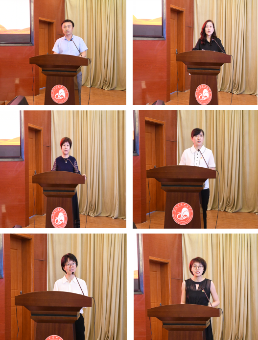 幼儿教育学院党委副书记(主持工作)王继康、文学院党委书记杨阳、经济与管理学院院长崔洁、马克思主义学院学生第二党支部书记孙倩、思想政治理论课教师周黎、历史文化与旅游学院辅导员王黎等六位同志在会上作了交流发言。