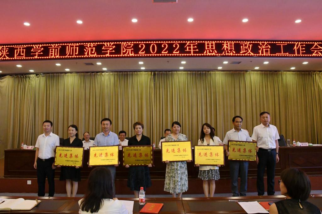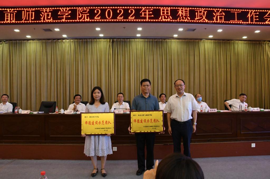 在大会颁奖仪式上,学校领导为获得省级思政工作荣誉的集体和个人颁发了奖牌和荣誉证书,为获得学校2022年师德建设示范团队、思想政治工作先进集体、学风建设先进集体的单位颁发了荣誉证书。