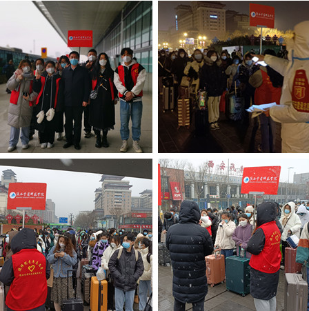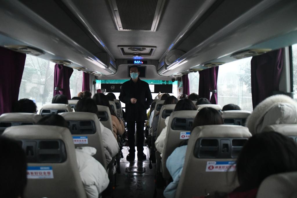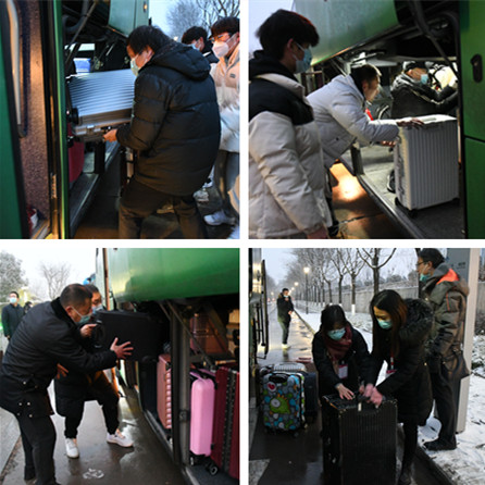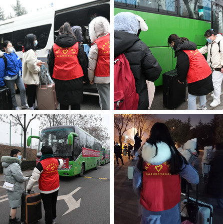 为确保学生“出得了门、上得了路、回得了家”,全体校领导亲临一线指挥转运工作。党委书记付建成在校内部署和指挥学生转运工作,校长邵必林在火车站、高铁站和机场组织指挥学生转运,其他校领导均在火车站、高铁站、机场和校内现场指挥学生转运对接工作。从1月20日下午以来,无论是通宵达旦,还是迎着风雪,全体校领导始终坚守在学生转运工作的第一线。他们来到转运学生的大巴车上,来到排队等候的同学们中间,来到车站列队候车的同学们身边,为同学们送上温暖关切的问候,反复叮嘱同学们做好返乡途中的个人防护,希望同学们在寒假期间不忘疫情防控和学习规划,要帮父母做一些力所能及的家务劳动,度过一个充实愉快的假期。听到了学校领导的殷殷嘱托,同学们更加感受到这一段特殊返乡旅途的温暖。