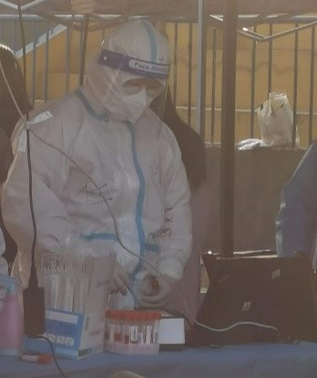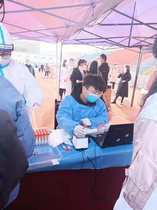 12月28日,我加入到学校核酸检测志愿者团队,在第一次穿上防护服的那一刻,我的内心有些激动,防护服、手套、口罩、帽子、面罩、一切都显得非常有仪式感。但是几天之后,我切身的感受到了身心俱疲。虽然心里斗志满满,但是多少有些心有余而力不足。胳膊的酸痛,嗓子哑,冻到僵硬的手脚,似乎快要断掉的脖子,这些都在一次次消磨着我的意志。我深刻的认识到志愿者的不容易远远不是我们用文字可以描述出来的,对于我来说这也是一次非常有意义的经历。无数次告诉自己很多志愿者都和自己一样甚至要比自己的处境和环境更加艰难。现在我的城市需要我们,我们的学校需要我们,所以坚决不能退缩。不论是作为一个成年人还是一位大学生,我们要肩负的使命和坚定的信念不应该只停留在口号上。在志愿服务期间,有来自很多同学,老师甚至是陌生人的鼓励与安慰,他们的每一句“辛苦你们啦!加油!”都会成为我们心中无限的动力,如魔法一般缓解我们的疲惫,也正是因为大家带来的温暖和爱,我坚持下来了,并且要一直坚守下去。有我们青年学子的助力,能够为前线的工作者们减轻一点负担,我的内心充满了自豪与骄傲。