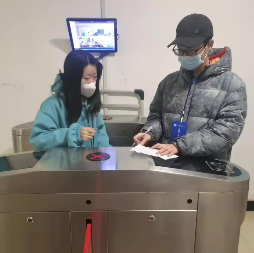 12月21日,第一轮全员核酸检测紧张而有条不紊的开始了,天还蒙蒙亮的时候我和许多出发去检测台的志愿者相遇在路上,我和大家一样,对即将开始的核酸检测工作紧张而期待,紧张着未知工作程序自己能否顺利完成,期待着自己能够对有意义的志愿工作贡献多少的力量。到场后明确不同志愿者的分工、为每一个检测台定员、保障每一个检测台志愿者穿好防护服、带动协助志愿者保障物资供应与检测台做好配合,终于第一轮核酸检测圆满完成。之后高频率的核酸检测在风雪中、在寒冬里、在志愿者们的高度配合下圆满的完成。一次次核酸检测工作中,我们一次次的熬夜又早起,和老师在深夜的校园中考察场地商议路线,凌晨三点、四点、五点甚至六点分批休息,只为了让次日的核酸检测流程更加的完善妥当,节约每一位同学的时间,减少聚集的风险。面对纷飞大雪依然坚守岗位,只因深信终有晴朗;手冷得通红、脚被冻得麻木,但接到做核酸的同学们递来的暖贴、糖果、贺卡时,检测台下又仿佛充满了明媚阳光。志愿者队伍是最坚不可摧的队伍,有幸站在这个队伍之中我深感荣耀,我相信,只要大家并肩同行,师院就会更好,长安就能常安。