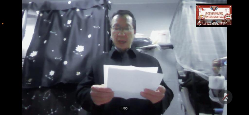随后,同学们第一次在宿舍通过线上进行表演,虽没有灯光绚丽,没有乐声悠扬,没有观众的喝彩与掌声,但每个人的心里却感受到温暖和喜悦,即使隔离在宿舍,隔着屏幕也能感受到彼此热烈的心跳。优美喜庆的舞蹈、动听的歌曲、让人捧腹的相声小品、快板魔术,各类节目应有尽有;节目期间还有各年级辅导员老师抽中的宿舍祝福、抢红包等互动环节,为同学带去欢乐,线上晚会精彩纷呈。