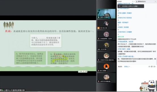 大学生心理健康教育与指导中心专职教师牛雪婷从班级心理委员会谈的一般问题、态度、常见的误区、基本技巧四个方面出发,启发心理委员思考在会谈中应该有的尊重、热情、真诚、共情、无条件积极关注的态度,在会谈中具备识别心理危机的敏感性。她希望在校园封闭管理期间,班级心理委员能架起同学与老师工作的桥梁,在宿舍生活中善于观察,积极主动交流。营造良好的宿舍人际关系和助人自助氛围。