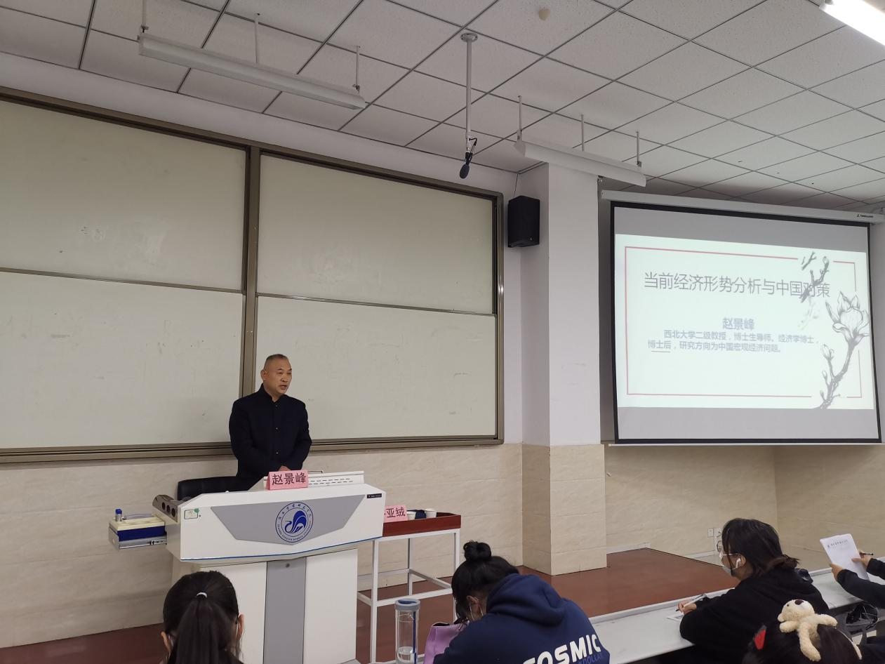 2021年10月20日下午,bat365邀请西北大学赵景峰教授做了题为《当前经济形势分析与中国对策》的形势与政策报告,马克思主义学院许亚绒教授主持报告会。bat365部分师生聆听了报告会。