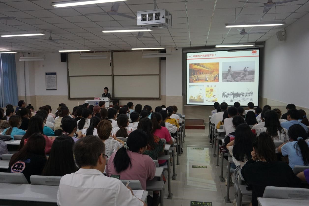 王晓荣教授进而阐述中华民族在共产党的领导下,迎来了从站起来、富起来到强起来的伟大飞跃,实现中华民族伟大复兴进入了不可逆转的历史进程。为了实现中华民族伟大复兴,中国共产党团结带领中国人民,浴血奋战、百折不挠,创造了新民主主义革命的伟大成就;自力更生、发愤图强,创造了社会主义革命和建设的伟大成就;解放思想、锐意进取,创造了改革开放和社会主义现代化建设的伟大成就;自信自强、守正创新,统揽伟大斗争、伟大工程、伟大事业、伟大梦想,创造了新时代中国特色社会主义的伟大成就。王晓荣教授的精彩报告赢得了师生们一阵高过一阵的掌声,学生们从这次报告中深刻认识到没有中国共产党就没有新中国。