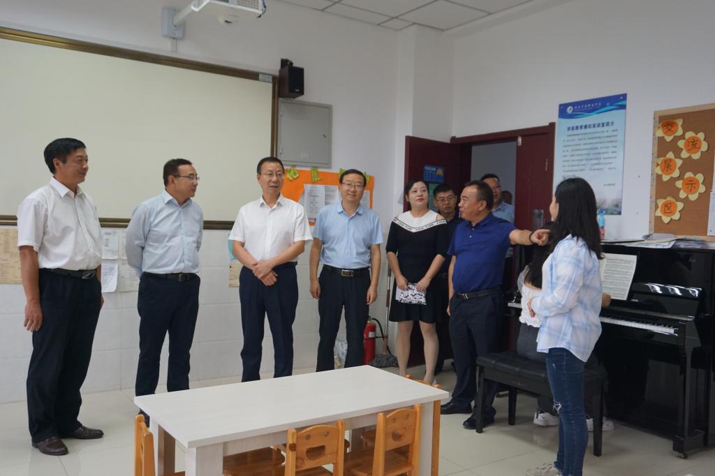 高岭副厅长带领工作组分别查看了学校学前教育实训室、附属幼儿园、视频监控室等建设情况,细致检查了bat365贯彻落实党的教育方针、新冠肺炎疫情防控及校园安全工作落实、思政课教师及辅导员配备和编制落实等方面情况。