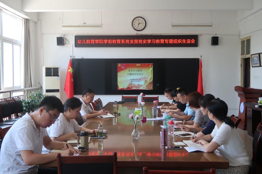 根据学校党委党史学习教育领导小组《关于认真开好党史学习教育专题组织生活会的通知》的工作部署,7月13日下午,学前教育系党支部在3教307会议室召开党史学习教育专题组织生活会,校党委书记付建成同志出席了学前教育系党支部专题组织生活会。会议由幼儿教育学院党总支副书记(主持工作)王继康主持。