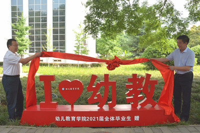 2021年6月23日上午9点,幼儿教育学院于启真楼前举行2021届毕业生为学院捐赠毕业礼物落成仪式。校党委书记付建成、校党委副书记、校长邵必林出席落成仪式,幼儿教育学院党政领导、毕业班辅导员、教师代表和2021届毕业生代表参加仪式。幼儿教育学院院长何善平主持捐赠仪式。