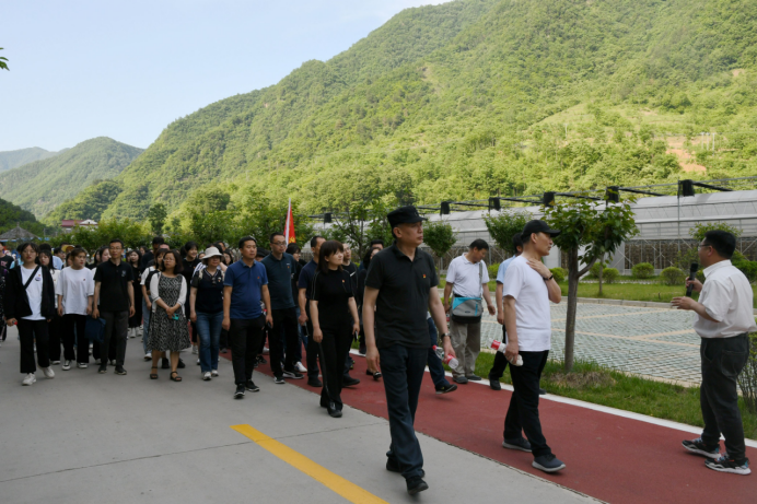 下午,学员们来到柞水县金米村。习近平总书记曾于2020年4月来金米村考察,充分肯定了金米村在决战脱贫攻坚中取得的成绩。金米村也成为三秦大地上脱贫攻坚的一个缩影。学员们参观了木耳大棚,了解了木耳种植技术,对这个小山村取得的瞩目成绩啧啧称赞。
