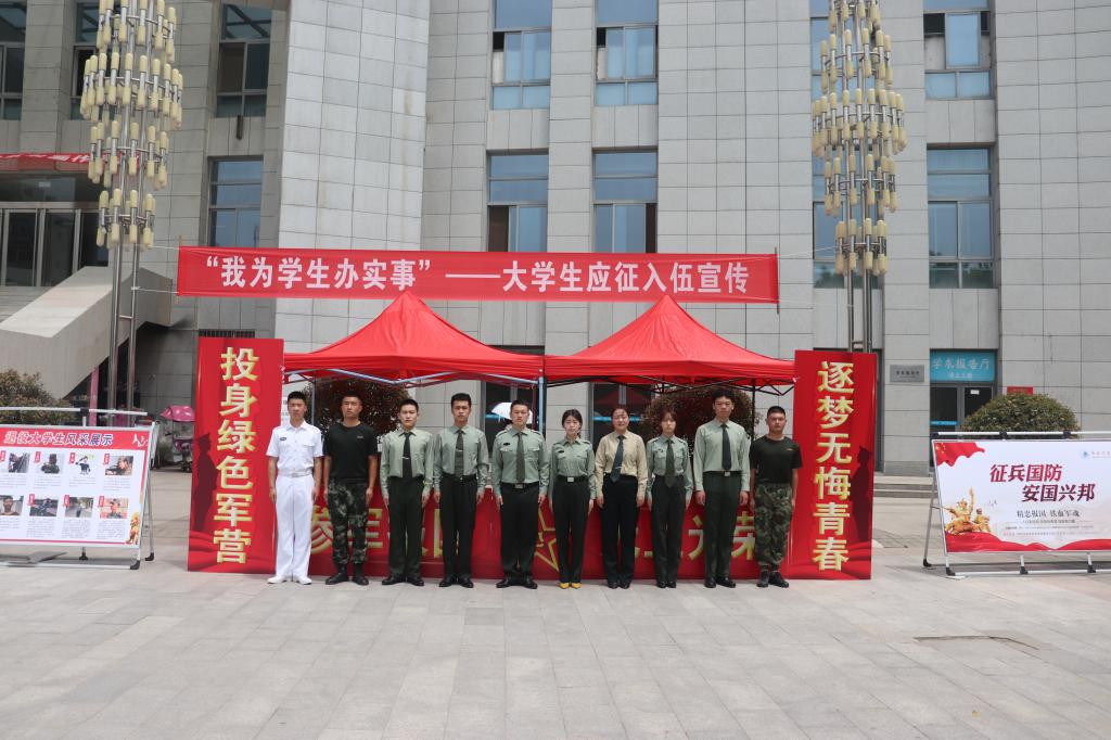 为扎实做好bat3652021年秋季征兵工作,结合党史学习教育,深入开展“我为学生办实事”的实践活动,解决学生就业难题,自5月起,bat365武装部采取摆宣传展板、发宣传手册、退伍大学生现场咨询问答等形式,广泛开展了征兵宣传进校园活动。