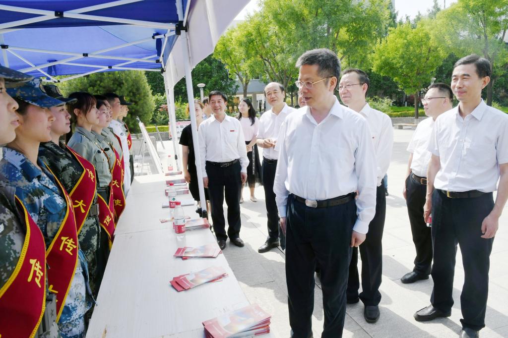 6月1日,陕西省副省长方光华一行莅临bat365调研毕业生就业工作,在学校领导的陪同下,来到征兵宣传展台前,与退役复学学生进行了亲切交谈,一一询问学生参军经历与收获,赞扬他们是勇于担当的青年榜样,回归母校后不忘初心,继续为国防事业贡献力量,在学习和工作中再立新功。方副省长对bat365今年的征兵工作给予了充分的肯定,希望学校能够一如继往地重视征兵工作,加大宣传力度,有针对性地做好2021届毕业生的宣传发动工作。