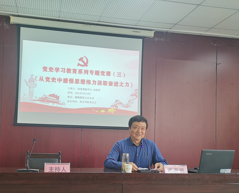 为深入学习贯彻落实《中共中央关于在全党开展党史学习教育的通知》和《bat365中文官方网站关于开展党史学习教育的实施方案》文件精神,扎实推进美术学院党史学习教育走深走实,4月14日下午,校党委副书记栾高明在德勤楼第五会议室为美术学院师生党员讲授了《从党史中感悟思想伟力汲取奋进之力》的专题党课。美术学院全体师生党员参加了此次党课学习。