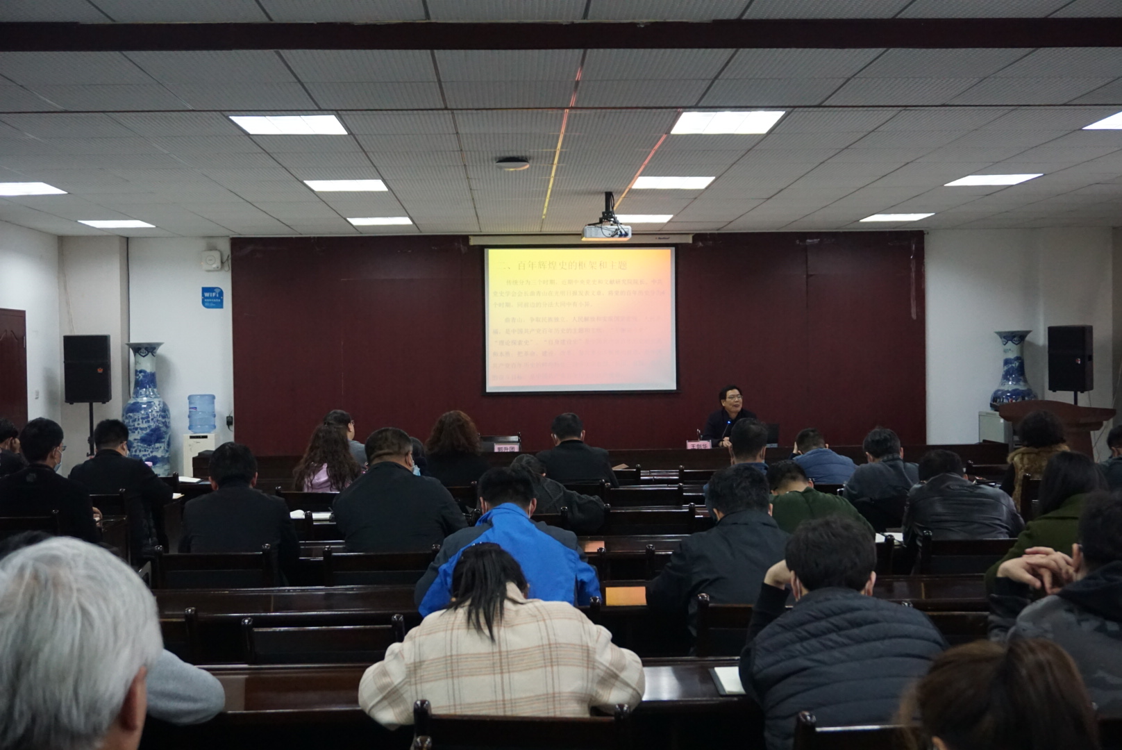 报告会上,王剑华教授以“重温百年辉煌史,共筑美好新时代”为题,从“我国的重史传统与中央学史号召;百年辉煌史的框架和主题;历史和人民选择了中国共产党;从党的三代领袖毛泽东、邓小平、习近平看增强核心意识;学好党史为共筑美好新时代汲取智慧和力量”等五个方面讲述了我们党百年的辉煌史,报告中运用了大量的史实和案例,以独特的理论视角,感人至深的典型实例,在历史与现实、理论与实践的贯通中阐述了中国共产党艰苦卓绝、光荣辉煌的奋斗历程,帮助大家对党光辉艰辛的百年奋斗历程有了更深层次的理解认识,进一步启示广大党员干部要从党史中汲取智慧力量,坚定理想信念,践行初心使命,在新征程上砥砺前行。