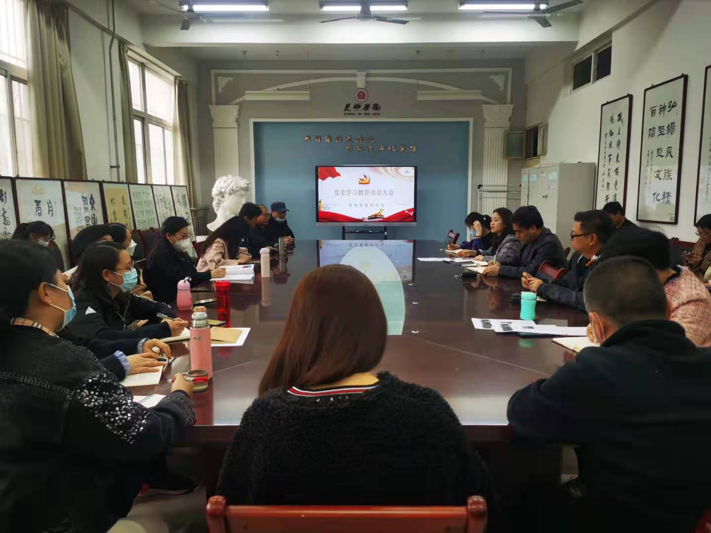 为深入学习贯彻习近平总书记在党史学习教育动员大会上的重要讲话精神,全面贯彻落实省委、省委教育工委和校党委关于开展党史学习教育的安排部署,推动党史学习教育走深走实,3月31日下午,美术学院党总支在启真楼美术学院会议室召开党史学习教育动员部署会,并开展了“学党史 悟初心”党史学习教育主题读书会及红色观影主题党日活动。全体教师党员参加了会议,会议由党总支副书记(主持工作)文竹主持。