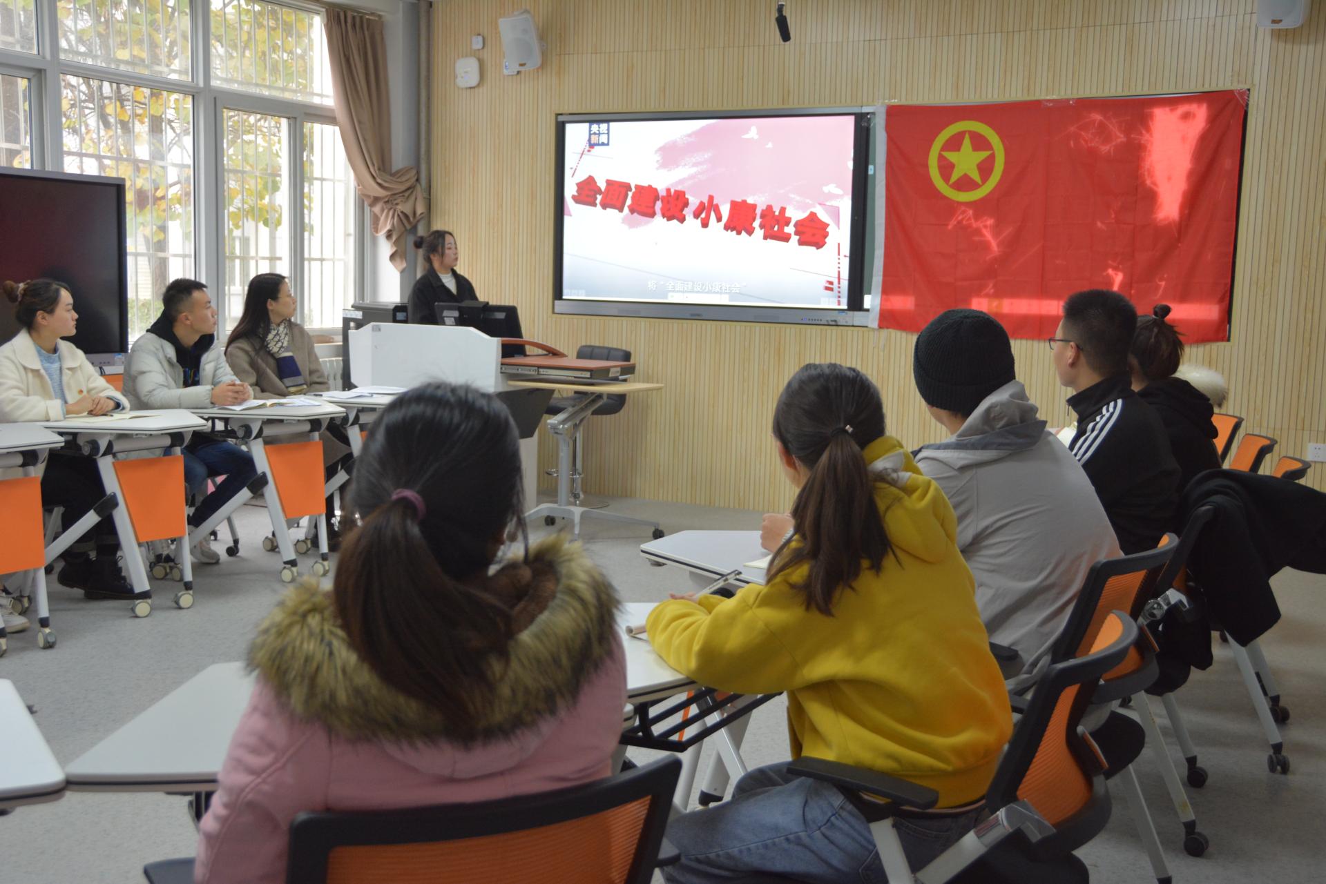 主题团日活动在“伟大时代,全新蓝图”的十九届五中全会新闻专题视频回顾中拉开序幕。经济与管理学院党总支副书记陈璐老师和活动主持人团支书石钰婷同学围绕全会的重大意义、重要精神以及创新举措,对全会公报中的重点内容进行了领学。与会人员就全会所提出的新发展阶段、新发展理念与新发展格局进行了集体学习。在场的同学们结合自身学习体会,进行了个人感悟的交流分享。来自榆林靖边的王楠同学畅谈十三五时期国家退耕还林政策以及沙漠化治理措施给家乡生态环境所带来的变化,表示作为新时代的青年,要做“十四五”时期的奋进者、开拓者和建设者,努力将小我融入大我。来自宝鸡眉县的杨嘉怡同学分享了家乡旅游业的发展给人民生活水平所带来的改变,表示作为当代大学生,应该努力增强未来服务社会的本领,用努力进取擦亮青春底色。来自安康汉阴的沈亚锋同学就家乡生态环境的改善以及脱贫攻坚所取得的显著成效进行了感悟分享,表示希望通过“十四五”时期的进一步建设,家乡的绿色经济能够得到更加全面的发展。来自榆林府谷的刘勇同学,分享了家乡交通设施以及生态环境的改善给日常生活所带来的便利,并与在场的同学一道回顾了入校以来学校教学设施、校园环境等各项事业的发展变化,表示作为师院学子,自己是幸运的一代,应该努力做国家建设与学校事业发展的积极参与者。校青年志愿者总队队长刘丹青同学就自己家乡辽宁老工业区经济的快速发展、生态环境的改善以及国家防疫攻坚战所取得的显著成效阐述了当代青年的成长与“两个一百年”奋斗目标实现的过程同步,作为新时代新青年,应该勇挑重担,与祖国同呼吸共命运。国旗护卫队队长齐斌同学结合自己在校期间的学习、工作经历,指出作为青年学子,要努力做到总结过去、立足现在、展望未来,不断提高自身的思想素质和专业能力,为国家的发展进步贡献属于自己的一份力量。